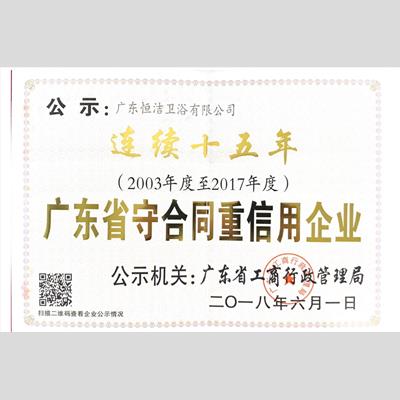 獎 項:廣東省守合同重信用企業(yè)(廣東恒潔衛(wèi)浴有限公司)