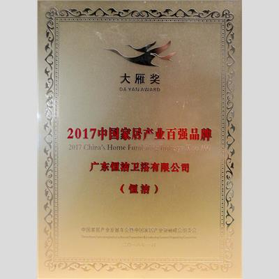 獎 項:大雁獎 2017中國家居產(chǎn)業(yè)百強品牌
