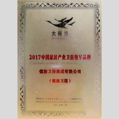 獎 項:大雁獎 2017中國家居產(chǎn)業(yè)衛(wèi)浴領(lǐng)軍品牌