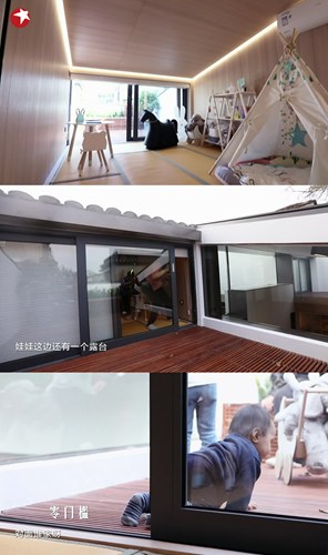 設(shè)計(jì)師還專門為孩子們打造了一間充滿童趣的兒童房,房間延伸出去是一個(gè)露臺(tái),室內(nèi)與室外露臺(tái)的零門檻設(shè)計(jì),讓孩子們可以安全玩耍。