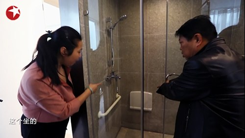 主臥衛(wèi)生間起到干濕分離作用的恒潔淋浴房,小空間更通透,其中的恒潔雙功能明裝淋浴大花灑,具備升降桿配置,可以根據(jù)使用人的身高自行調(diào)節(jié)手持高度,讓汪老先生無論是站著或是坐著洗澡都能輕松適應(yīng),花灑手持多種出水方式,可滿足不同人群的淋浴需求。