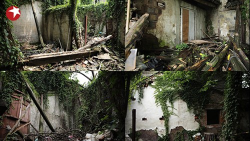 老宅年久失修加上無人居住,房子的坍塌堵住了原本的入戶門,想要進(jìn)到祖宅只能從過道上的小矮窗通過,房頂也坍塌得只剩房梁;無人打理的室內(nèi)被野生植被侵占,斑駁的老墻也被遮住了原來的樣貌,遍地的垃圾更堆積出了半人之高……在老汪外孫女的眼里,這里沒有房子沒有家,只是一片廢墟。