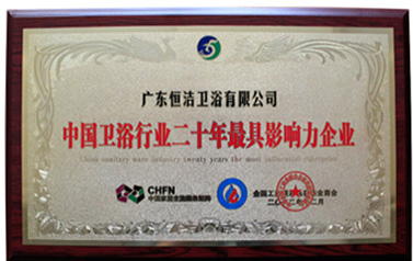 恒潔衛浴榮獲全國工商聯頒發的中國衛浴行業“最具影響力品牌”。