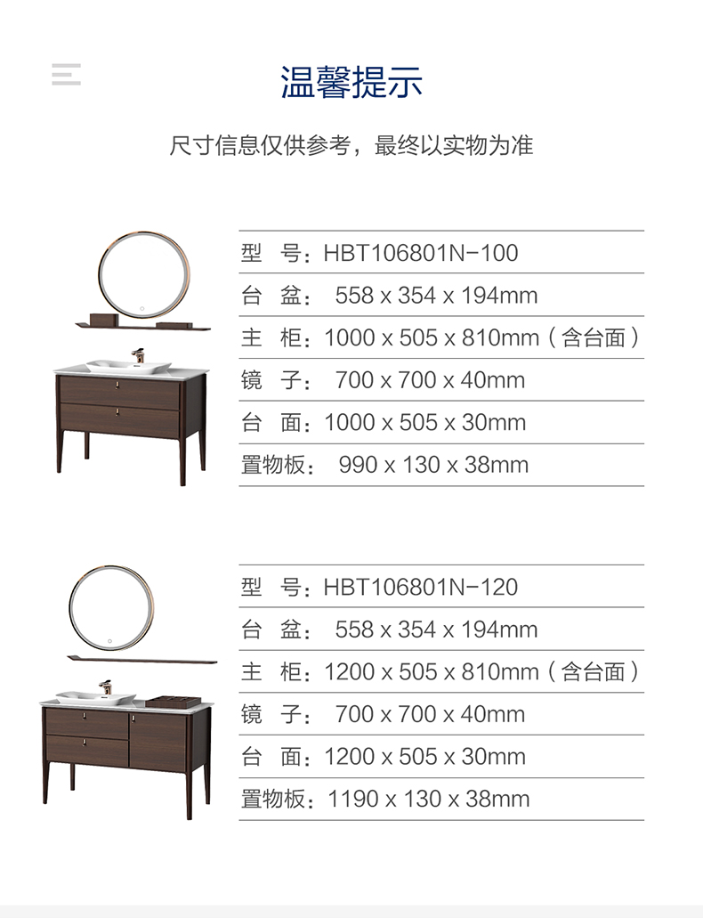HBT106801N-100 (經(jīng)典胡桃木色)實(shí)木浴室柜